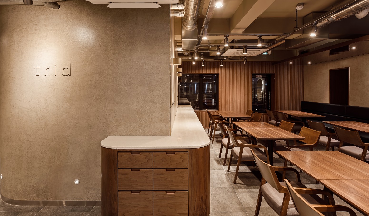 트리드는 다양성, 좋은 맛, 즐거움을 캐치프레이즈로 하는 컨템포러리 파인다이닝입니다.  많은 사람이 착각하는 게 있습니다. 오프라인 비즈니스를 펼치는 장소가 자신의 공간이라는 생각입니다. 아닙니다. 상업 공간은 고객의 것이고, 고객을 위한 곳이어야 합니다. 고객 입장에서 경쟁력을 만드는데 집중해야 하죠. 단, 세상사 늘 그러하듯 예외가 있습니다. 바로 파인다이닝입니다. 파인다이닝 공간은 다른 접근이 필요합니다.오너 셰프로 첫걸음을 뗀다는 파인다이닝 셰프의 의뢰를 받았습니다. 국내 최초 미슐랭 3스타 ‘모수 서울’ 부주방장 출신의 유망한 셰프였죠.입지는 청담동 한 건물의 2층. 층고가 낮을뿐더러 공간 자체에 개방감이 크게 느껴지지 않아 현장을 보고 고민한 기억이 납니다. 하지만 진짜 고민은 따로 있었습니다. ‘셰프를 닮은 공간으로 어떻게 변모시킬 수 있을까’ 하는 것이었습니다. 파인다이닝은 셰프와 요리, 그리고 공간의 일체감이 무척 중요하기 때문입니다.‘셰프의 요리를 어떻게 공간으로 보여줄까?’‘셰프, 요리, 공간의 일체감을 어떻게 만들까?’“조금 더 파인하게, 그리고 야채 하나를 썰더라도 조금 더 특별하게 썰려고 노력했고…” 넷플릭스 시리즈 <흑백요리사>에 ‘트리플스타’라는 닉네임으로 나와 하는 말을 보고 ‘여전하시구나’ 했습니다. ‘트리드’ 기획 초기에도 셰프가 추구하는 방향은 같았습니다. 요컨대 간결함 속에서 느껴지는 퀄리티였죠. 셰프와 대화 후 공간 키워드를 ‘간결함’으로 잡고 전체적인 그림을 그리기 시작했습니다. 가장 큰 특징은 주방입니다. 간결함의 극치를 보여주는 초 개방형 주방이죠. 사실 오픈 주방은 흔합니다. 하지만 ‘트리드’는 그 정도가 다릅니다. 나름대로 과감하게 그린 3D 레이아웃을 보고 셰프는 말했습니다. “저는 다 노출해도 괜찮아요.”주방 관리와 요리 과정에 대한 자신감을 느낀 뒤 다시 조율한 방향은 ‘주방의 무대화’입니다. 우선 주방을 A, B 섹터로 나누고 완전한 구분을 위해 그 사이 자동문을 설치했습니다. 두 섹터는 기능이 다릅니다. A는 설거지˙육수 제작 등 요리의 베이직에 해당하는 작업을 하는 공간이고, B는 그릴링˙플레이팅 등 고객에게 선보이기 전 요리를 세팅하는 공간입니다. 그리고 ‘트리드’는 A, B 전부를 공개합니다. 진정한 의미의 오픈 주방이죠.주방이 무대라면 고객의 자리는 객석과 같습니다. 좌석 배치를 통상적인 방법과 달리한 이유입니다. 대개 상업 공간은 고객이 서로 등을 마주보게 합니다. 그래야 독립성을 더 느끼니까요. ‘트리드’는 쉽게 말해 구내식당과 같은 배치입니다. 파인다이닝 셰프가 요리를 내놓는 전 과정을 공연처럼 보며 좋은 맛을 즐기는 공간이라는 사실을 드러내기 위해서죠. 전체적으로는 압도되지 않을 정도의 정갈한 프리미엄을 녹였습니다. 벽면에 베이지색 스페셜 페인팅 작업을 기본으로 했고, 포인트로 진한 남색을 썼습니다. 편안한 공간 연출을 위해 양질의 우드도 곳곳에 사용했습니다. 여기에 우리가 느낀 셰프의 트렌디한 이미지를 살짝 가미했습니다. 스테인리스 소재와 대리석 복합 타일, 간접 조명 등을 사용해서입니다. 미러 바리솔(스트레치 실링 시스템)을 활용해서는 층고를 실제보다 높아 보이도록 했습니다.이렇게 완성한 ‘트리드’는 2022년부터 4년 연속 미쉐린 가이드에 올랐습니다. 미쉐린 가이드 서울 2025의 글을 덧붙입니다. “공간의 안락함과 차분한 서비스, 세련된 디자인의 개방형 주방이 이곳의 근사한 요리와 어우러져 일체감을 제공한다.”