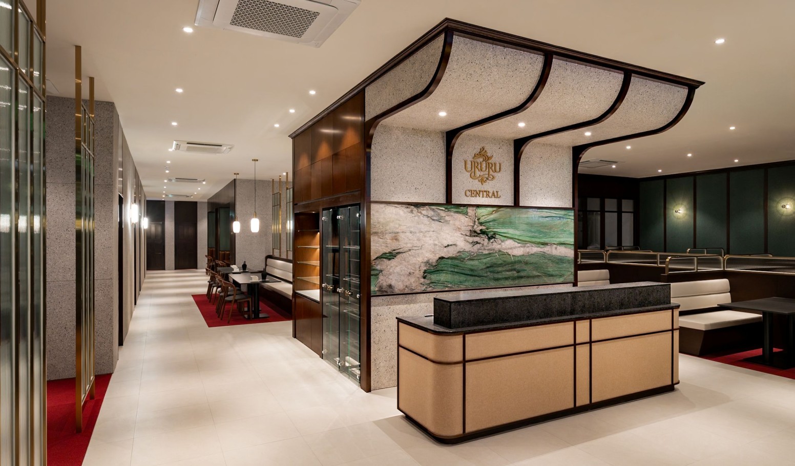 우루루는 고급스럽고 건강한 일품 중식요리를 전문으로 하는 중식당입니다.   ‘우루루’ 인계점 프로젝트로 인연을 맺은 클라이언트의 두 번째 의뢰였습니다. 전형적인 중식당이었던 ‘우루루’는 인계점부터 방향을 전환했습니다. 기존 공간은 브랜드로 성장하기에 한계가 있어 차별점을 만들기 시작했죠.규모가 훨씬 커진 광교점은 보다 프리미엄한 방향을 추구했습니다. 메뉴에 북경오리에 이어 딤섬까지 추가됐기 때문입니다. 내놓는 음식이 고급화된 만큼 일반 중식당과 분명 달라야 했습니다.‘중식당이 브랜드로 성장하려면 어떻게 해야 할까?’‘한 끗 차이를 무엇으로 만들까?’한 끗 다른 포인트를 만들기 위해서는 중식이라는 아이템부터 이해해야 합니다. 중식은 고기구이와 함께 한국을 대표하는 외식 스테디셀러입니다. 그런데 창업하기는 고깃집보다 어려워서 상대적으로 경쟁은 덜한데, 맛이 검증되면 안정적인 수요를 확보할 수 있다는 특징을 보입니다. 마케팅 측면에서도 중식은 목적성이 분명합니다. 회식, 가족 모임 등 방문 동기가 뚜렷한 경우가 많죠.  ‘우루루’ 광교점이 프리미엄 노선을 택했지만 과해져서는 안된다는 기획이 나온 이유입니다. 일상 속에서 특별한 경험을 주는 공간이어야지 ‘자장면 한 그릇에 몇 만 원 하는 거 아니야?’하는 생각이 들면 안 되는 거죠.전체적인 방향은 패밀리 레스토랑에서 출발했습니다. 패밀리 레스토랑의 최대 강점인 독립성에서 착안해 모든 좌석을 부스형으로 만들었습니다. 구체적인 컨셉은 과하지 않은 프리미엄입니다. 조금 편하게 말해보면, 중국에 단체 여행 갔을 때 여행사에서 데려갈만한 대형 중식당을 모티브로 했습니다. 그렇기 때문에 어느 정도 촌스러움도 허용했습니다. 화려함을 중화시켜주는 장치로 중국 특유의 로컬 감성을 의도적으로 활용한 거죠.눈에 띄는 마감재는 스톤 도장입니다. 건축에서 많이 쓰는 마감재인데 과감히 사용했습니다. 로컬 대형 식당에 갔을 때 느껴지는 웅장한 느낌을 줄 수 있다고 생각했기 때문입니다. 디자인 포인트로는 화려한 색상의 대리석부터 발색 금속, 붉은 카펫, 수입 벽지까지 과감하게 썼습니다. 자칫 잘못하면 촌스러워지지 않을까 하는 걱정 없이 적극적으로 믹스했습니다. 공간이 다소 떠 보이는 부분은 우드를 써 눌러줬습니다.끝으로 화려함과 촌스러움, 모던함과 프리미엄의 균형을 맞추며 마무리했습니다.