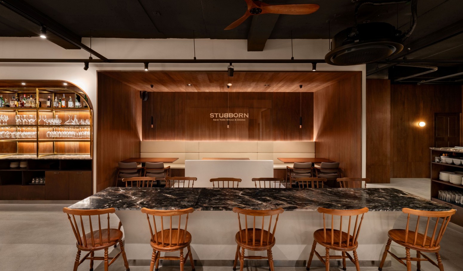 스터번은 2016년 역삼역에서 시작한 스테이크하우스입니다. 격식보다는 편안을, 고급스러움보다는 즐거움을 지향합니다.   스테이크하우스 리뉴얼 프로젝트를 맡기로 한 뒤 기존 공간에서 식사를 했습니다. 우리나라에선 특별식 중에서도 특별식에 해당하는 스테이크를 판매하며 10년을 버티기가 얼마나 어려운 일인지 잘 아는 만큼 꼭 한 번 경험해보고 싶어서 시간을 냈습니다. 오랜만에 써는 스테이크인 만큼 나름대로 격식을 갖추고 식사를 시작했습니다. 그런데 시간이 지나며 느낀 건 의외의 감성이었습니다. 분명 스테이크하우스인데 로컬 레스토랑 같았달까요? 고기에 대한 철학을 완고하게 지켜나가겠다는 네이밍과는 또다른 매력이 있었습니다.‘스터번’ 리뉴얼은 그 공간 경험에서 시작했습니다. 로컬 스테이크하우스 감성을 보다 효과적으로 드러내는 쪽으로 큰 줄기를 잡았습니다.‘사랑받고 있는 공간의 리뉴얼은 어떻게 해야 할까?’‘고급스러움과 편안함의 밸런스를 어떻게 맞출까?’기본은 전통 스테이크하우스입니다. 단, 너무 무겁거나 부담스럽지 않아야 했습니다. 주 고객층이 동네 주민과 주변 직장인이었기 때문입니다. 전체적인 톤앤매너는 밝고 따뜻하게 했습니다. 바탕을 아이보리 톤의 마이크로 시멘트 토핑으로 환하게 잡았고, 바닥도 콘크리트 폴리싱으로 자연스럽게 마감했습니다. 거기에 우드 소재를 적극 사용해 편안하면서도 온기가 느껴지도록 했습니다.보다 신경 쓴 부분은 공간 레이아웃입니다. 스테이크하우스인만큼 아사도 그릴에서 구워지는 고기가 돋보이도록 조닝을 나눈 것입니다. 단연 돋보이는 자리는 매장 중앙입니다. 대리석 테이블로 중심축을 잡으면서도, 일반적으로 꺼리는 자리를 오히려 가장 머무르고 싶게끔 했습니다. 다른 조닝도 각각 디테일이 있습니다. 특히 한쪽 벽면을 책장으로 채운 구역은 보다 친근한 공간으로 다가가고자 하는 ‘스터번’의 정체성이 잘 드러납니다.마무리로는 퀄리티를 높이는 작업을 했습니다. 브론즈 톤의 신주 발색 금속을 포인트로 썼고, 스테이크하우스 특유의 묵직함이 느껴지도록 열연강판을 아사도 그릴 상부 후드에 사용했습니다.‘스터번’ 리뉴얼 프로젝트는 정통과 로컬, 프리미엄과 편안함이라는 상반된 감성을 균형 있게 담아냈습니다. 브랜드의 다음 10년을 준비하는 새로운 출발점이라는 기획 하에 완성한 공간입니다.